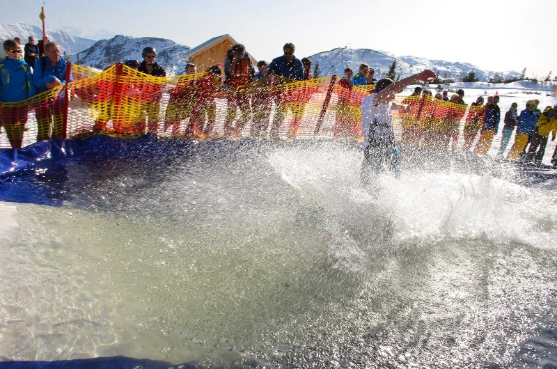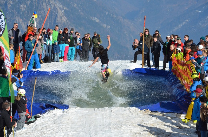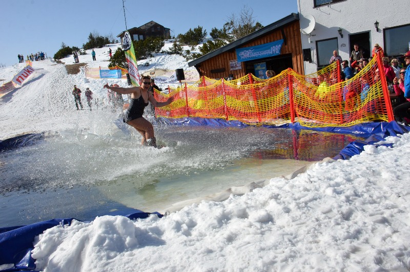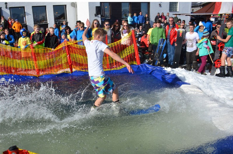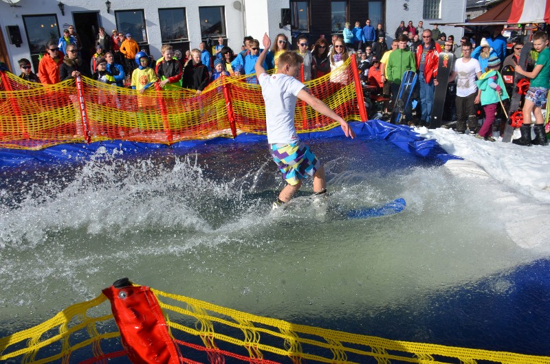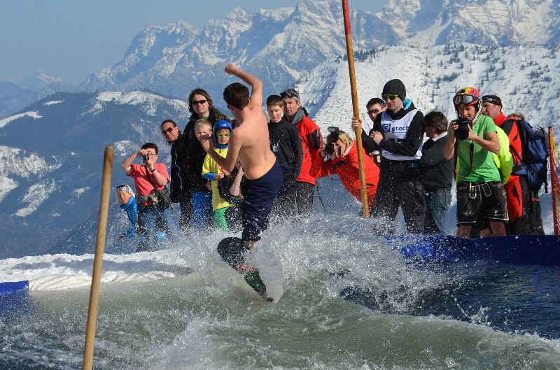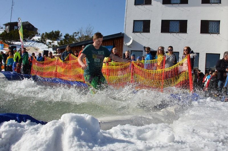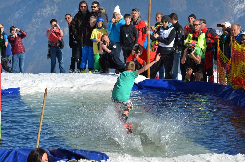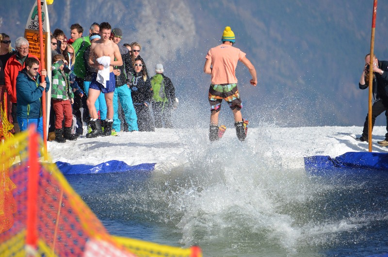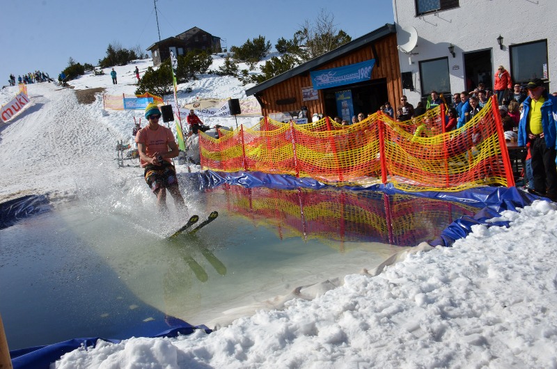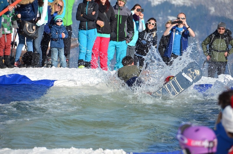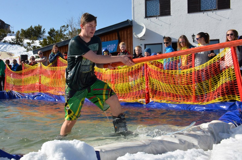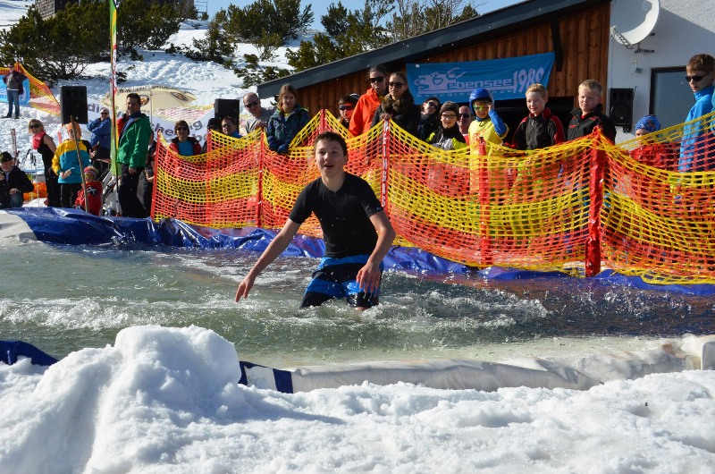 Bei diesem Bewerb zeigte sich, wer wirklich seine Schi oder sein Brett auf dem Schnee und auch auf dem Wasser beherrscht. Bei traumhaftem Sonnenwetter war der Watersplash wieder ein Gaudium für Teilnehmer und Besucher.