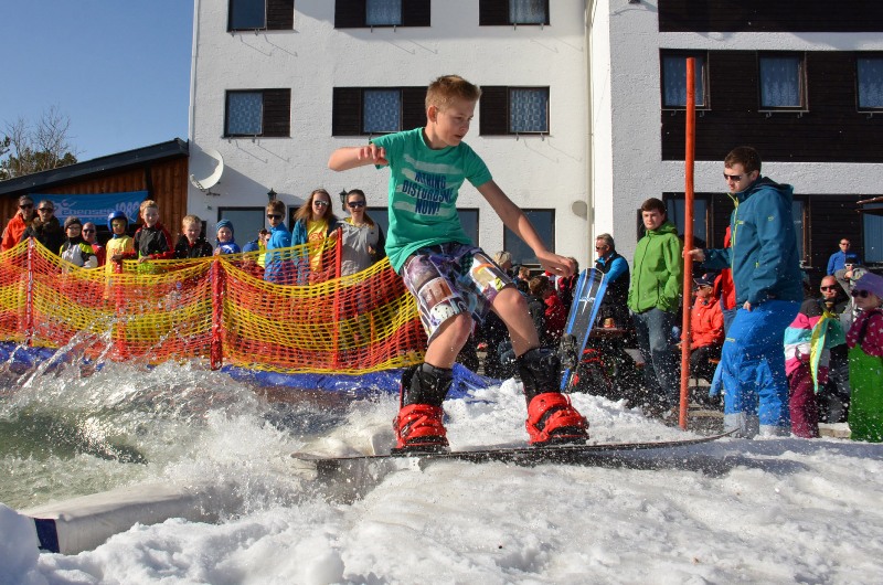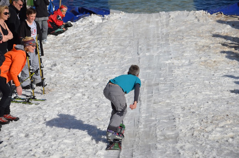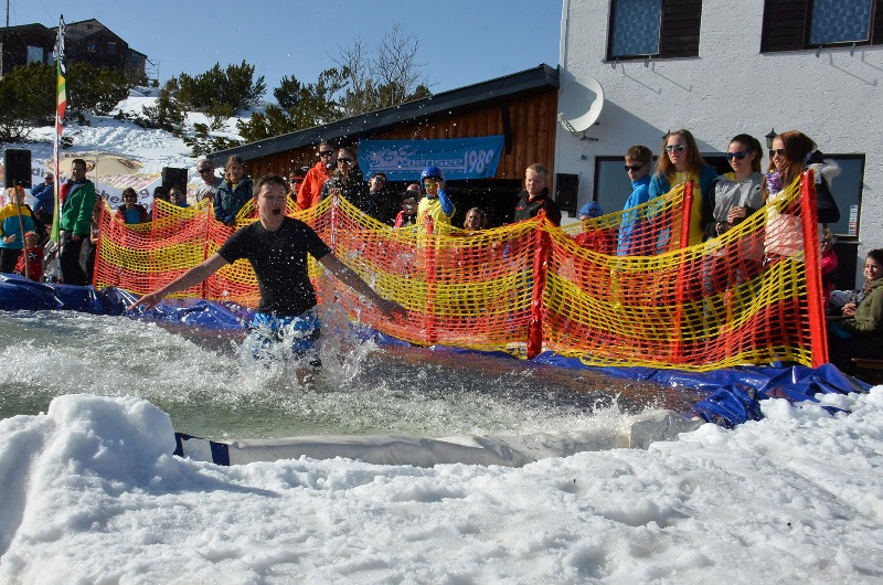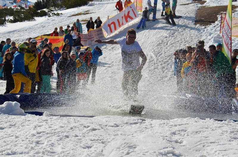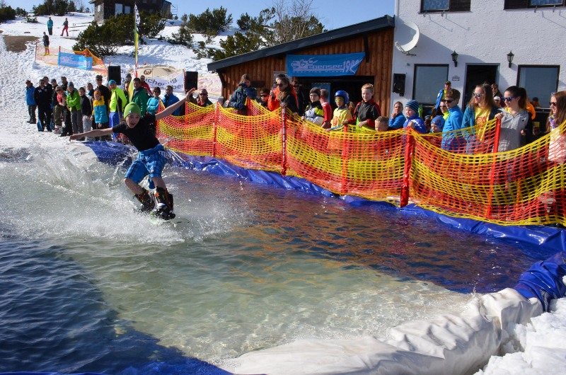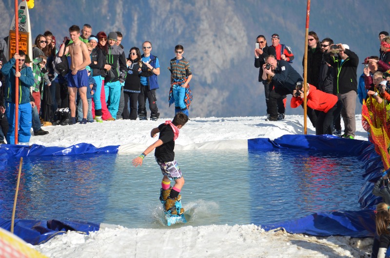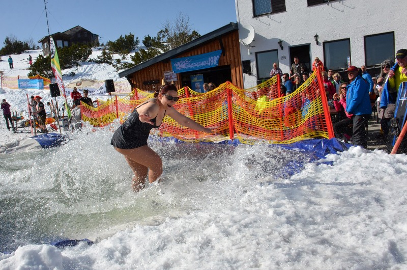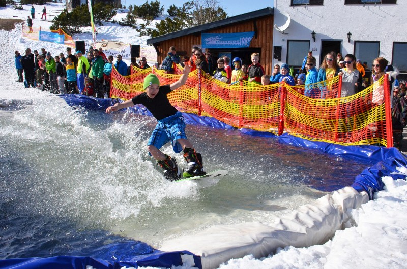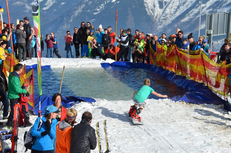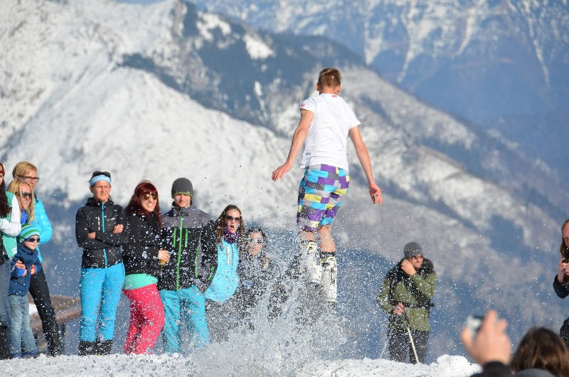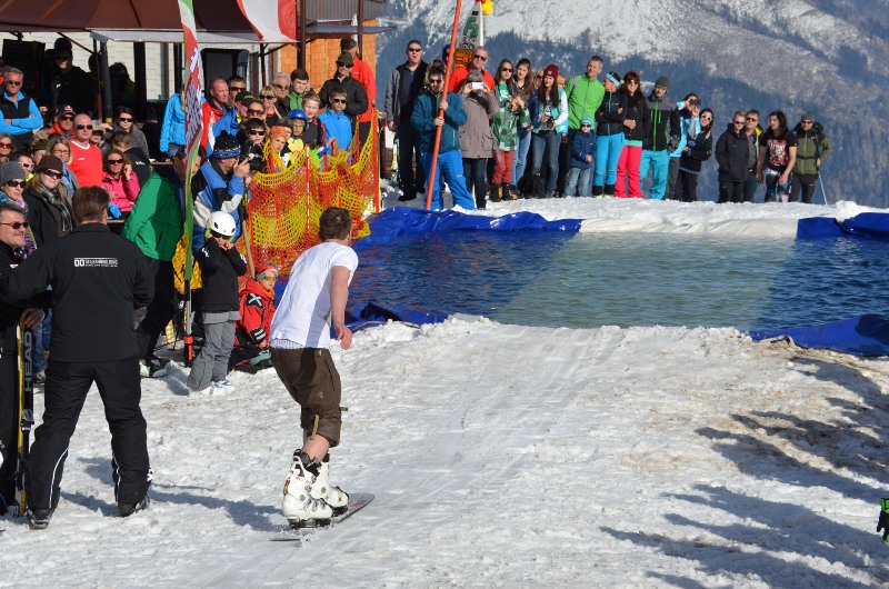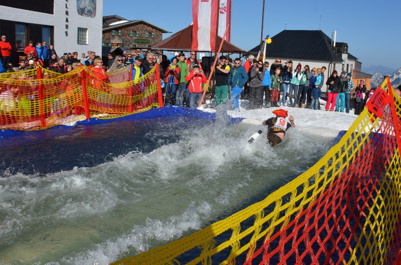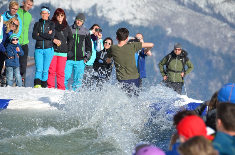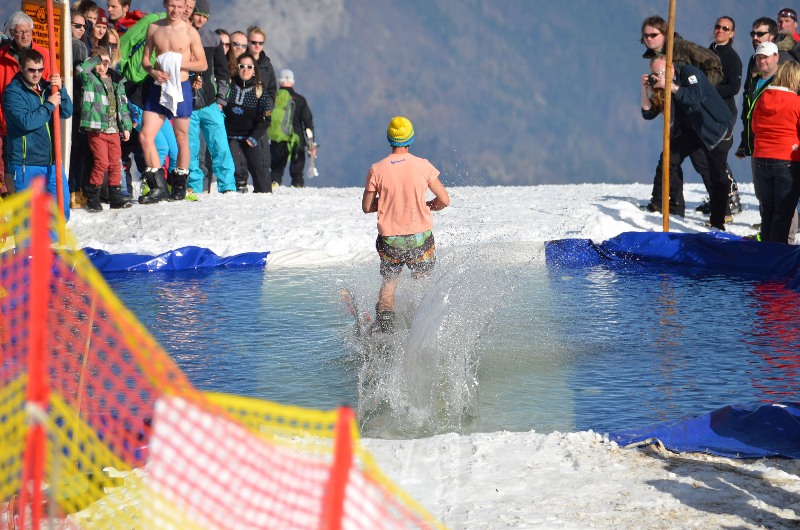 Bei diesem Bewerb zeigte sich, wer wirklich seine Schi oder sein Brett auf dem Schnee und auch auf dem Wasser beherrscht. Bei traumhaftem Sonnenwetter war der Watersplash wieder ein Gaudium für Teilnehmer und Besucher.