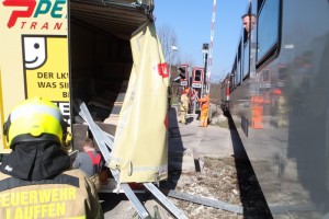 Bad Ischl: Eilzug erfasste Sattelzuganhänger auf Bahnübergang