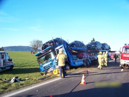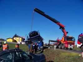 Nachdem ein 21-jähriger Autofahrer aus Vöcklamarkt am Donnerstag mit einem LKW-Zug Pöndorf kollidierte, wurde er schwer verletzt in das LKH Vöcklabruck eingeliefert. Ein 52-jähriger Kraftfahrer aus Zell-Arzberg war um 6:45 Uhr mit seinem Kraftwagenzug – beladen mit Neufahrzeugen – auf der Bundesstraße 1 von Straßwalchen Richtung Vöcklabruck unterwegs.