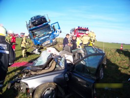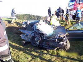 Der Fahrer wurde im Fahrzeug eingeklemmt. Die alarmierte Feuerwehr schnitt den Verunfallten aus dem Wrack. Anschließend lieferte der NAW den 21-Jährigen mit schweren Verletzungen in das Krankenhaus ein. Der Kraftfahrer blieb unverletzt, erlitt jedoch einen Schock.