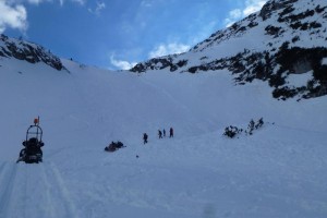 Eine 50-jährige Schitourengeherin aus Gosau unternahm am Freitagnachmittag eine Schitour über den „Rumpler“ zur Dachsteinwarte. Bei der Abfahrt über den Eissee und in weiterer Folge über den Taubenriedl bemerkte sie im Bereich Taubenkar eine bereits abgegangene rund 40 Meter breite und 200 Meter lange Lawine. Da sie auch Einfahrtsspuren bemerkte, schaltete sie ihr Lawinensuchgerät auf Empfang und nahm immer wieder leichte Signale war. Da sie diese Signale aber nicht verfolgen und näher orten konnte, verständigte sie um 15.10 Uhr über Notruf die Einsatzkräfte.