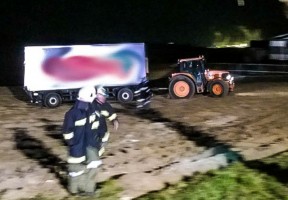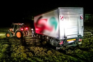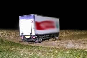 Lkw- Anhänger machte sich selbstständig – mit Traktor aus Feld geborgen