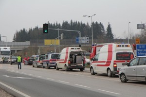 Ein Großaufgebot an Rettungskräften versorgten die Verletzten. Das Kind wurde ersten Informationen nach mit Verletzungen unbestimmten Grades ins LKH-Vöcklabruck, die Erwachsenen mit Notarztbegleitung ins LKH Gmunden eingeliefert. Während der Unfallaufnahme kam es im Kreuzungsbereich zu erheblicher Staubildung.
