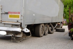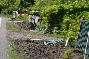In der Ortschaft Langwies, kurz vor der Fa. Leirich, kam es am Montagmorgen in Fahrtrichtung Bad Ischl ein Sattelkraftfahrzeug rechts auf das unbefestigte Bankett, rammte einen Gartenzaun und anschließend das Brückengeländer des Langbaches. Dem Lenker gelangt es, das Fahrzeug wieder auf die Fahrbahn zu bringen. Ein Reserverad des LKWs wurde aus der Halterung gerissen und blieb auf der Fahrbahn liegen. Ein nachkommender PKW streifte das Rad, schleuderte über die Gegenfahrbahn und rammte eine Verkehrstafel. Er kam mit der Bodenplatte auf dem ausgehobenen Betonfundament der Verkehrstafel zum Liegen.