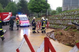 Zu einer kleinräumigen Hangrutschung im Bereich des Laakirchner Höllgrabens kam es heute in den Morgenstunden. Nach lang anhaltenden Regenfällen hatte sich Erdreich im Bereich eines Sickerschachtes gelöst und behinderte teilweise die Durchfahrt einer Wohnstraße.