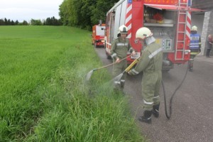 Zum Glück geriet nur die Hecke mit rund sechs Meter Höhe in Brand und nicht das Wohnhaus. Durch die enorme Rauchentwicklung war es aber augenscheinlich nicht genau erkennbar. Die Feuerwehren Wiesen und Pinsdorf konnten den Brand rasch ablöschen und so war ein Einsatz unserer Wehr nicht mehr nötig.