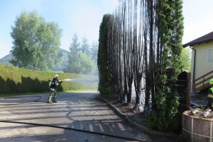 Der Brand der etwa 6 Meter hohen Hecke konnte rasch abgelöscht und ein Übergreifen der Flammen auf das Wohnhaus verhindert werden. Der Sachschaden hält sich in Grenzen. Die Polizei nahm die Brandermittlungen auf.