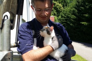 Ein Wohnungsmieter in der Agergasse in Attnang-Puchheim benötigte die Hilfe der Feuerwehr Puchheim. Seine Katze kletterte in den Vormittagsstunden des vergangenen Samstages aufs Dach des Mietshauses und traute sich nicht mehr nach unten. Sie verweilte in der Dachrinne bis die Einsatzkräfte das Haustier mit dem Arbeitskorb des Wechselladefahrzeugs aus dessen Lage befreiten. Anschließend konnte der Stubenkater wohlauf dem Besitzer wieder übergeben werden.