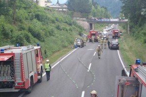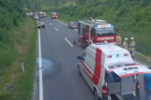 Ich war zufällig einige Minuten, nachdem Ersthelfer sowie Rettung, Polizei und Feuerwehr bereits eingetroffen waren, am Ort des Unfallgeschehens. Nach Auskunft eines PKW-Lenkers, welche das Unfallgeschehen unmittelbar beobachtet hatte, hat der Unfalllenker mit weit überhöhter Geschwindigkeit einen vor ihm mit etwa 100km/h (!) fahrenden PKW überholt. Dabei kam es zum Zusammenstoß mit einem entgegenkommenden PKW.