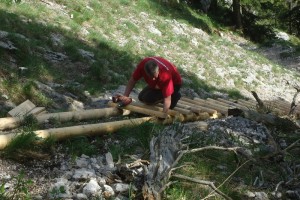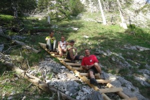 Nachdem im letzten Jahr das Bründl und sämtliche Stiegen saniert wurden, war es jetzt an der Zeit, die zum Teil morschen Leitern auszuwechseln. Die Mitglieder des Alpenvereins Gmunden leisten dies in freiwilliger Arbeit im Dienst der Sicherheit für allle Bergwanderer.