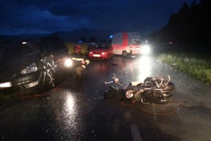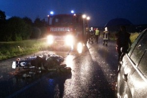 Zu Aufräumarbeiten nach einem Unfall wurde die Feuerwehr der Stadt Laakirchen gestern in den Abendstunden gerufen. Ein Motorrad war aus bisher unbekannter Ursache in der Gschwandtnerstraße gegen einen entgegenkommenden PKW geprallt. Der Motorradfahrer wurde dabei erheblich verletzt. Die Feuerwehr übernahm das Freimachen der Straße und band ausgelaufene Treibstoffe.