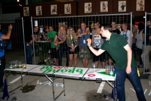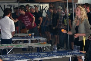 Das Spiel läuft folgendermaßen ab: auf einem speziellen Bierpong Tisch werden auf beiden Seiten je 6 oder 10 Becher in einem zur Spitze zeigenden Dreieck aufgestellt. Diese Becher werden leicht mit Bier oder Wasser gefüllt. 2 Teams mit je 2 Spielern stehen sich an den Tischenden gegenüber. Ziel ist es mit einem Bierpong Ball (Tischtennisball) in die Becher des gegnerischen Teams zu treffen. Bei einem spannenden Finale konnte sich dann das Team „Klatschmeister“(Richard Hofmann u. Rene Berner) gegen das Team „bearcats“ (Christoph Seel u. Daniel Krugluger) durchsetzen.