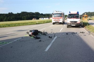 Zur gleichen Zeit fuhr eine 24-jährige Autofahrerin aus Desselbrunn mit dem Pkw auf der Wankhamer-Straße Richtung Regau und wollte bei der Kreuzung mit der Landesstraße links abbiegen. Sie dürfte aus unbekannter Ursache den Motorradfahrer übersehen haben und bog unmittelbar vor ihm links ab. Der Motorradfahrer prallte ungebremst gegen das Auto.