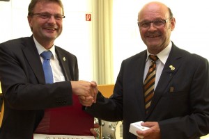 Hannes Heiden überreichte die Auszeichnung und wies in seiner Laudatio darauf hin, dass Konsulent Direktor Wolfgang Bobowski seine Tätigkeit in der Musikschule als Arbeit für und in der Öffentlichkeit, für die Kulturstadt Bad Ischl und für ein offenes Haus verstanden hat. Als Leiter war er für die Übersiedlung der Musikschule vom alten Kurhaus an den Standort nahe der Kaiservilla und für die Entwicklung von der Gemeinde- zur Landesmusikschule verantwortlich.