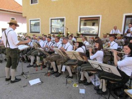 Die Marktmusikkapelle Seewalchen unter Kapellmeister Johannes Vogel spielte einen unterhaltsamen Frühschoppen, der bei bestem Sommerwetter rund 400 Gäste auf den Kirchenplatz lockte.