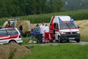 Am Donnerstagnachmittag kollidierte in Ohlsdorf ein Landwirt mit seinem Traktor mit einem entgegenkommenden PKW. Dabei wurde die Fahrzeuglenkerin unbestimmten Grades verletzt und musste nach Erstversorgung ins Krankenhaus Gmunden eingeliefert werden. Die PKW-Lenkerin fuhr gegen 14:45 Uhr im Ortsteil Unterthalham auf der Gemeindestraße, wo ihr ein mit Heuballen beladener Traktor entgegenkam. Der Traktorlenker dürfte die 52-jährige Frau übersehen haben und schob dieser den im Frontbereich geladenen Heuballen in dessen Windschutzscheibe.