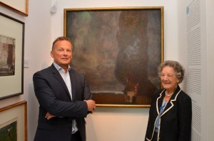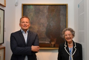 Auf den Fotos: Leopold-Museum-Managing-Director Mag. Peter Weinhäupl und Leopold-Museum-Vorstandsmitglied Dr. Elisabeth Leopold, die Witwe des Sammlers Leopold, präsentieren „Die große Pappel II“.