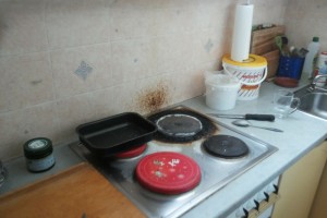 Die bereits anwesende Polizei teilte uns mit, dass die Wohnung versperrt ist. Der erste Atemschutztrupp verschaffte sich gewaltsam Zutritt zur Wohnung und stellte angebrannte Speisen am Herd fest. Das Kochgut wurde entfernt und der Herd stromlos geschaltet. Zeitgleich wurden alle Fenster geöffnet und mit der Belüftung des Stiegenhauses begonnen.