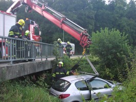 Der Alkotest verlief positiv. Der total beschädigte Pkw wurde anschließend von der Stadtfeuerwehr Puchheim mittels Hebekran aus dem Weißbach geborgen.