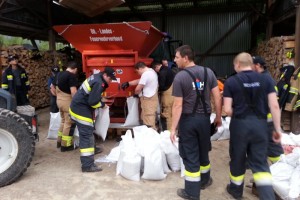 Mit einem Abfüllgerät wurden 2500 Sandsäcke von den Feuerwehren in der Schottergrube Falkensteiner zum Verladen vorbereitet. Insgesamt vier LKWs lieferten Sandsäcke mit einem Gesamtgewicht von 40 Tonnen zum Ischl Fluss, wo diese von einem Kran abgeladen wurden. Dort wurden über 100 Meter Sicherungsdamm von den Feuerwehrmännern aufgebaut.