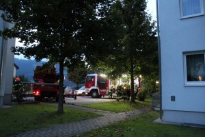 Aufstellflächen und Hindernisse erschwerten die Erreichbarkeit von Hausöffnungen, um Personenrettungen durchführen zu können. Reges Interesse an der Brandeinsatzübung zeigten die Bewohner der Wohnanlagen Kieninger, die mit ihren Kindern und Angehörigen die Übung verfolgten.