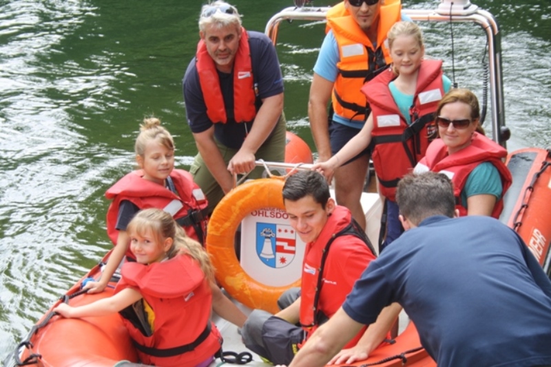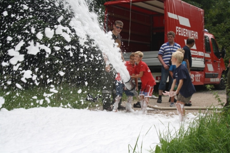 Nach der Begrüßung ging es bereits mit über 30 Kinder los zur Traun. Dort angekommen wurden 4 unterschiedlichen Stationen aufgebaut, wobei alle Kids tatkräftig mithalfen. Anschließend konnten sich die Teilnehmer abwechselnd mit dem Wasserwerfer, dem Schaumrohr und den Strahlrohren beschäftigen. Als besonderes Highlight durfte auch jedes Kind eine Runde mit dem Motorboot der FF Ohlsdorf mitfahren.