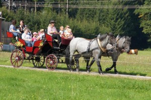 Bei wem die Kräfte trotzdem nachließen, der konnte sich auch bequem mit einer Kutsche ins Ziel bringen lassen. Erstmals waren heuer auch Reiter mit Pferd oder Pony als Teilnehmer auf der Strecke unterwegs. Den Kindern wurden an jeder Station eigene Spielplätze angeboten und wer wollte, konnte sich toll schminken lassen. Für die musikalisch passende Umrahmung sorgte auch heuer wieder der „Gmoazwiedan-Express“. Zusätzlich wurden bei der Schlussstation Kinokarten für das StarMovie Regau und Schmankerlkörbe der Regauer Bauern verlost.