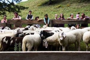 Die 80 Schafe von der Hütteneckalm in Bad Goisern sind zurück von ihrer „Sommerfrische“ und wieder wohlbehalten im Tal angekommen. Während anderswo bei Almabtrieben die Kühe Abschied von der alpinen Höhenluft nehmen, sind es auf dem Hütteneck die „Lampö“.   Bevor am Wochenende der Weg ins Tal angetreten wurde, wurden die Tiere in einem Gehege zur sogenannten Schafmusterung (im Dialekt „Lampömusterung“) zusammengetrieben.