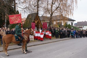 13.30 Uhr: Ritt über Höllersberg, Wimm, Weyr, durch den Ort zur Stehrerkapelle, wo der Festakt mit Festansprache von Pfarrer Mag. Helmut Kritzinger und die Pferdesegnung stattfinden