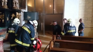 Nach dem ein Kirchenbesucher den Brand bemerkte schlug dieser sofort beim Kirchenpersonal Alarm, worauf diese sofort die Feuerwehr verständigten und erste Löschversuche unternahmen. Ein Atemschutztrupp machte den Brand ausfindig und die betroffenen Räumlichkeiten wurden mit einem Überdruckbelüfter rauchfrei gemacht. Nach ca. 3 Stunden konnte der Einsatz beendet werden. (Fotos FF Mondsee)