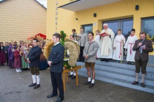 Dazu wurde das beim Brand beschädigte und frisch restaurierte Kreuz gesegnet und wieder im Saal angebracht. Die Pfarrbevölkerung wurde zum Pfarrcafe eingeladen. Dabei konnte das in neuem Glanz erstrahlende Haus besichtigt werden. Umrahmt wurde das Fest traditionell durch die Teilnahme der örtlichen Vereine.
