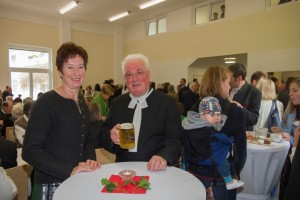Auch Pfarrheim – Wein und Traubensaft wurden angeboten. Alles kann auch weiterhin erworben werden. Der Erlös daraus wird natürlich für die noch nicht abgeschlossene Finanzierung der Renovierung verwendet. (Fotos: privat)