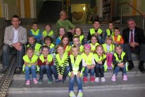 Ende September wurden heuer wieder von Bgm Kons. Karl Staudinger und dem Zivilschutzbeauftragten von Schwanenstadt, Herrn LBD-Stv. Robert Mayer, MSc, an alle Schülerinnen und Schüler der ersten Klassen sowie an die Vorschülerinnen und Vorschüler der Volksschule Schwanenstadt Kinder-Warnwesten übergeben, die allen Schulanfängern in Oberösterreich kostenlos zur Verfügung gestellt werden.
