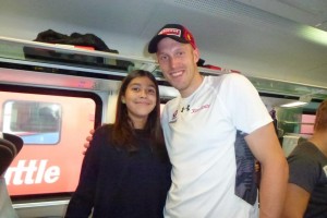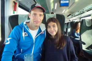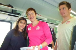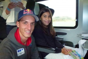 Die kompletten österreichischen Nationalteams der Alpinen, Snowborder, Nordischen und Biathleten waren im Zug nach Wien. Stars, von Marcel Hirscher, Anna Fenninger, Matthias Mayer über Gregor Schlierenzauer, Thomas Diethart, Christoph Bieler, Dominik Landertinger und Benjamin Karl, Julia Dujmovits und viele, viele mehr. Während der dreistündigen Fahrt hatte Marlene nicht nur die Möglichkeit Autogramme (über 50) für sich und Ihre Freundinnen von den Stars zu erhalten sondern sich auch mit Ihren Idolen über vieles zu unterhalten.