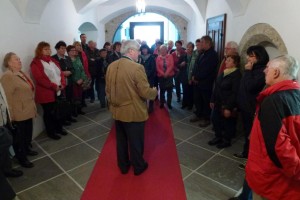 Die Reise führte in die Nachbargemeinde Frankenmarkt. Dort besichtigte man Schloss Stauff. Das im Privatbesitz der Familie Starzinger befindliche Gebäude wurde vom Besitzer vollkommen und prachtvoll restauriert. Es steht nun für künstlerische Vorführungen und Ausstellungen zur Verfügung. Dabei konnte man auch einen dort zur Schau gestellten „Regauer Bauernkasten“ besichtigen.
