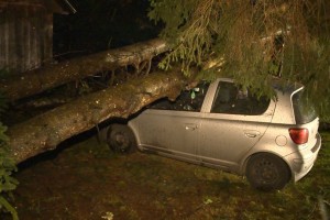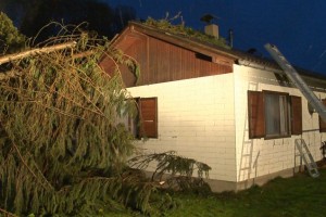In Bleiberg, Gemeinde Irdning stürzten in der Nacht 2 Bäume auf ein Wohngebäude sowie auf einen davor geparkten PKW der Familie. Die FF Altirdning entfernte gemeinsam mit schwerem Gerät der Gemeinde Irdning die Bäume vom Dach und dem Auto und dichteten die beschädigten Dachflächen provisorisch ab.