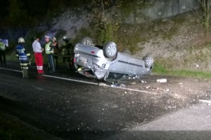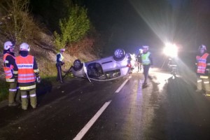 Eine Lenkerin verlor die Kontrolle über ihr Fahrzeug und überschlug sich. Das Fahrzeug kam stark deformiert am Dach zu liegen. Ersthelfer versorgten die Lenkerin sofort.