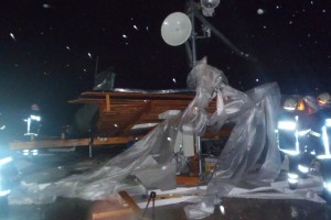 Dramatisch ist die Lage in Sulzbach. Das Dach des Technozentrums wurde zur Hälfte abgedeckt und auf ein gegenüberliegendes Wohnhaus geweht. Die Folge ist ein enormer Sachschaden. Die Einsatzkräfte der Freiwilligen Feuerwehren sicherten den Dachstuhl des Technozentrums bzw. wurde mit ersten Aufräumungsarbeiten begonnen. Leider wurde eine Zivilperson unbestimmten Grades verletzt und musste vom Roten Kreuz Bad Ischl in LKH Bad Ischl eingeliefert werden.