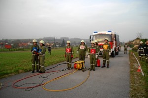 Nach der Abnahme der Prüfung durch das Bewerterteam des Bezirkes Vöcklabruck unter der Leitung von HAW Werner Kronlacher sowie OAW Herbert Hattinger und OAW Franz Grabner wurden die Leistungsabzeichen im Feuerwehrhaus Steindorf übergeben.