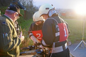 Nach einem intensiven Übungsprogramm im Oktober war es am Freitag den 31. Oktober 2014 um 16:00 Uhr soweit. Drei Gruppen traten zur Prüfung Technische Hilfeleistung an und erwarben die begehrten Abzeichen in den verschiedenen Stufen. Dabei mussten die Bewerber alle Geräte in den Fahrzeugen bei verschlossenen Türen zeigen können, Fragen aus verschiedenen Sachgebieten beantworten, einen vorbeugenden zweifachen Brandschutz aufbauen, die Einsatzstelle Absichern und Ausleuchten, sowie einen Angriff mit Spreizer und Schere zur Menschenrettung innerhalb einer vorgegebenen Sollzeit durchführen.