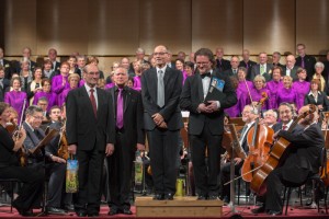 Mit der Pariser Sinfonie von W.A.Mozart und den Orchesterstücken von Anton Bruckner konnte sich das Orchester von seiner sinfonischen Seite zeigen. Danach wurde die Konzertbühne belebter und bunter: 90 Sängerinnen und Sänger des Ohlsdorfer Kirchenchores, des Gmundner Kammerchores und des choruslacusfelix brachten gemeinsam mit dem Orchester das „Schicksalslied“ von Johannes Brahms zur Aufführung. Rhythmische und dynamische Gegensätze des Werks waren klar herausgearbeitet. Dirigent, Chor und Musiker genossen das hoffnungsvolle Nachspiel des dramatischen Hauptteils von Hölderlins Gedicht.