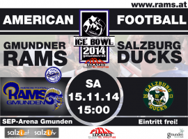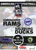 Am Samstag, 15. November tritt die Kampfmannschaft der RAMS in Aktion und lädt zur 1. ICE BOWL in die SEP-Arena in Gmunden. Gegner werden ab 15:00 Uhr die Ducks aus Salzburg sein!