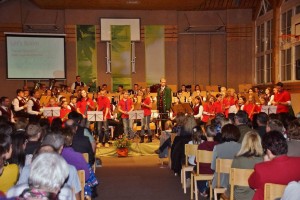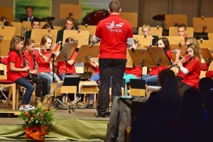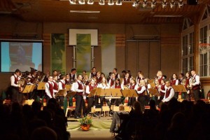 Und das Konzert fing auch gleich mit den “jungen Meistern” flott an. Unter der Leitung von Simon SCHRALL marschierte das Jugendorchester Gschwandt auf die Bühne und zeigte ihr Können mit zwei schon recht anspruchsvollen Musikstücken unter großem Beifall des Publikums, dass den Veranstaltungssaal bis zum letzten Platz gefüllt hatte.