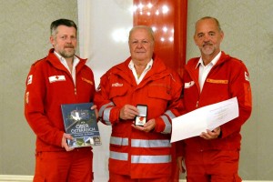 Ischls Ortsstellenleiter Ferdl Mittendorfer und sein Stellvertreter Hans Strubreiter gratulierten ganz speziell Matthäus Plamberger für sein 40-jähriges Rotkreuz-Jubiläum.