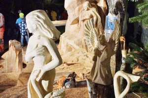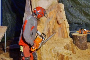 Rudolf SCHINNERL, der Kettensäge Schnitzer ist bei seinem Kunstwerk auch ein beachtliches Stück weiter gekommen. Der Riese ERLA und auch die Nixe Blondel sind schon aus dem riesigen Mammutbaumstamm deutlich ersichtlich und der Künstler hofft dieses und nächstes Wochenende fertig zu werden.