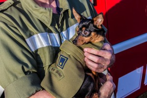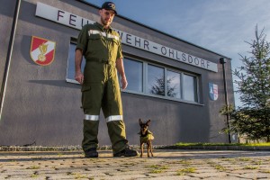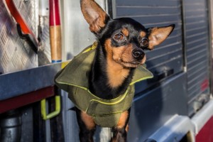 Er ist nicht gerade der größte, aber mit der neuen Dienstuniform sieht er aus wie ein großer. Benjamin, ein 3 ½ Jahre alter Zwergpinscher ist für sein Herrchen neben seinem neuen Hobby „Feuerwehr“ das wichtigste.