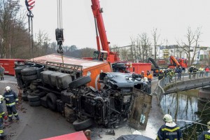 „Am Einsatzort angekommen sah nur mehr der hintere Teil des Anhängers heraus. Wir dachten schon an das schlimmste, konnten aber aufatmen nachdem wir den Lkw in der Böschung und nicht in der Traun vorgefunden haben“, so der Einsatzleiter der Feuerwehr Ohlsdorf, HAW Stefan Pamminger. Des Weiteren konnten uns die Ersthelfer darüber informieren dass der Lenker ansprechbar war.