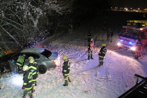 Am 27. Dezember wurde kurz vor 21 Uhr die FF Regau zu einer Fahrzeugbergung, auf der Zufahrt zum Baggersee Regau, alarmiert. Ein PKW kam im dichten Schneetreiben aus noch bisher unbekannter Ursache ins Schleudern, kam von der Fahrbahn ab, durchbrach einen Zaun und stürzte über eine Böschung Richtung Baggersee.