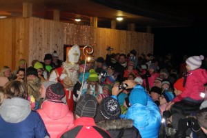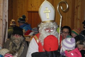 Nach einer Geschichte vom Nikolaus, einigen Gedichten und Liedern von den Kindern verteilte er seine mitgebrachten Geschenke und sorgte so für helles Leuchten in den Kinderaugen! Danach stieg er mit seinem Gehilfen wieder in die Fuhr und entschwand zu den Klängen der Obertrauner Weisenbläser in der Dunkelheit der Nacht! (Fotos: Stephan Höll)